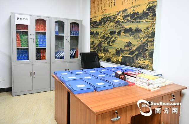 下图为党群服务中心里的扶贫资料一角,情色小说 驻村工作的详细资料都以实体文件形式存放于此。