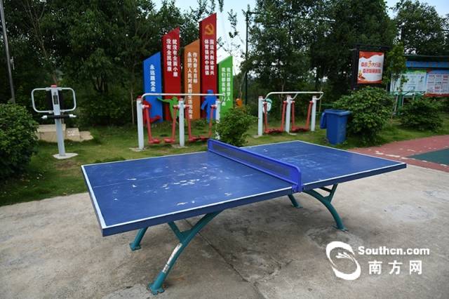 在球场周围,还配备了康体设施、乒乓球桌等,每天都有不少村民来到这里参与体育锻炼。