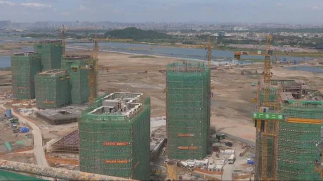 记者上午在施工现场看到,随着8号楼的顶板完成混凝土浇筑作业,包括8号楼在内的项目10栋主要建筑提前一周完成封顶,为项目的顺利竣工打下良好基础。