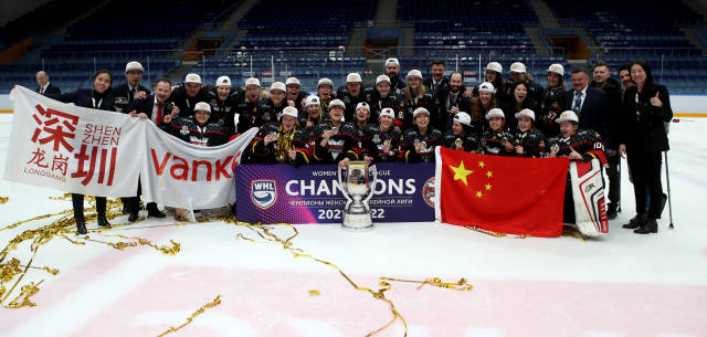 4月26日,2021-2022赛季俄罗斯女子冰球联赛(WHL)总决赛进行第三场较量,深圳昆仑鸿星万科阳光队主场2比1战胜斯基泰人,在五场三胜制的总决赛中战胜对手,勇夺冠军。