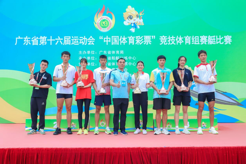 广东省第十六届运动会“中国体育彩票”竞技体育组赛艇比赛21日在广东国际划船中心落下帷幕。