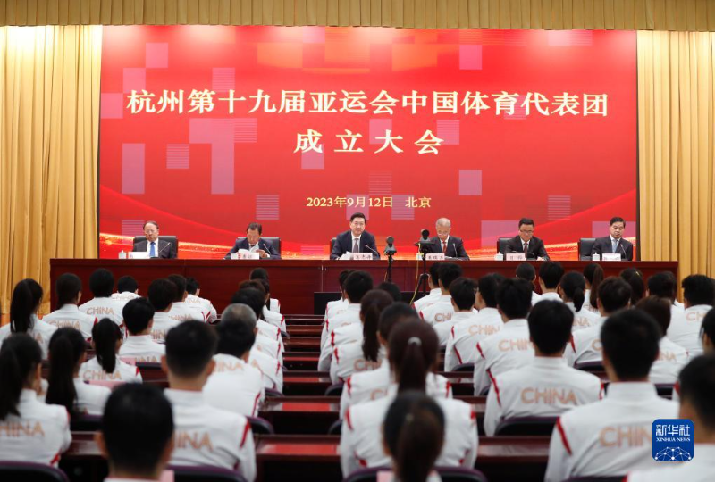 9月12日,杭州第19届亚运会中国体育代表团成立大会在北京召开(图/新华社)