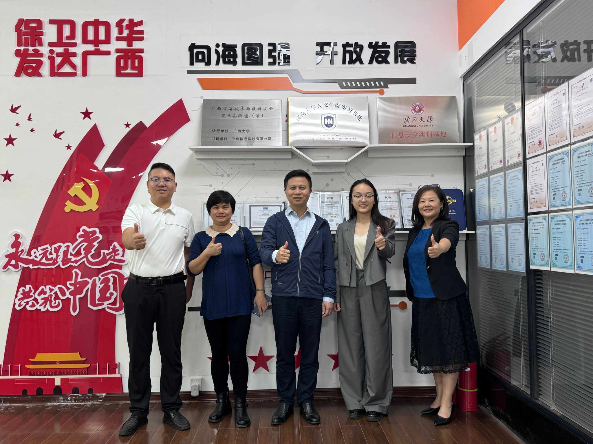 党委书记、校友总会副秘书长杨元广带队走访广西校友企业,先后走访了广西校友会会长陆炳雄校友企业景秀园林、常务副会长吴江校友企业飞创科技。
