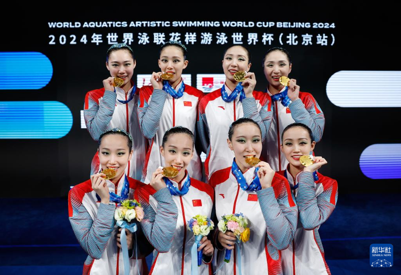 4月7日,2024年花样游泳世界杯(北京站)落幕,中国花游队一共收获6枚金牌、3枚银牌,合计9枚奖牌,金牌总数及奖牌总数均位列榜首。其中,来自广东的双胞胎姐妹王柳懿、王芊懿随队出战集体自由自选比赛,夺得金牌。