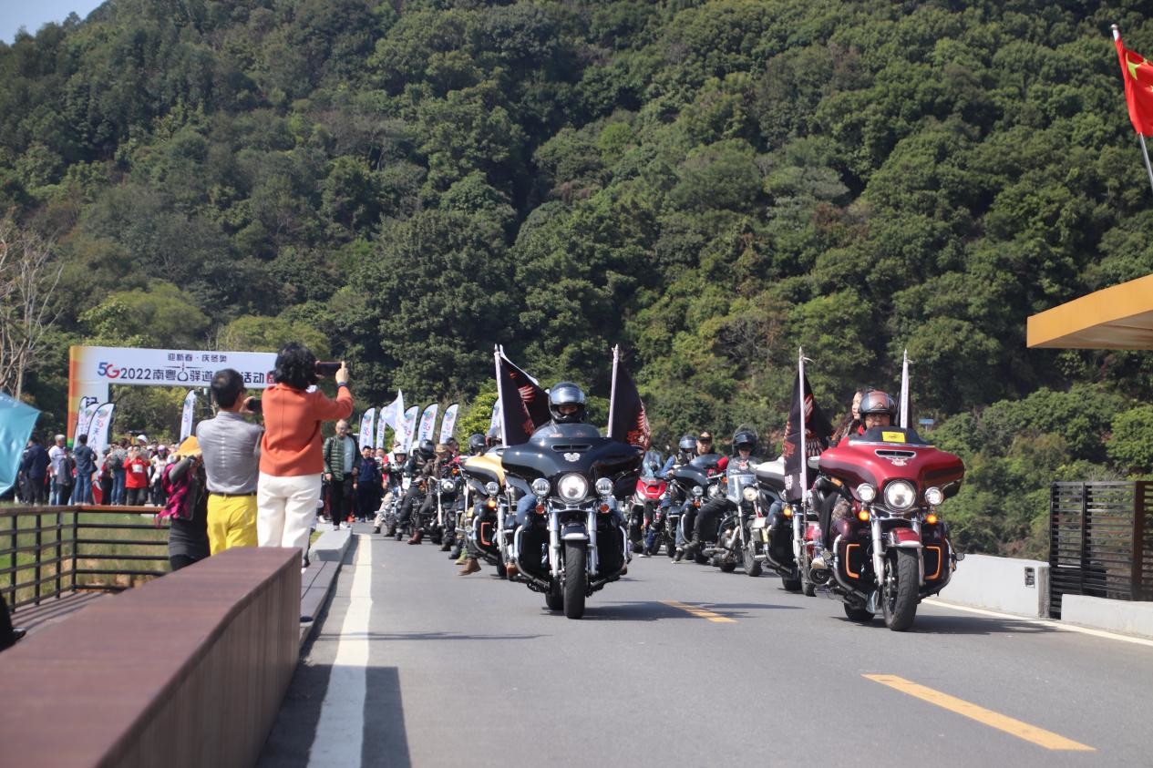 启动仪式现场气氛十分火热,随着发令枪的鸣响,两列帅气“哈雷”开道,徒步选手们精神抖擞、兴致昂扬由此出发,开启本次的徒步体验之旅。