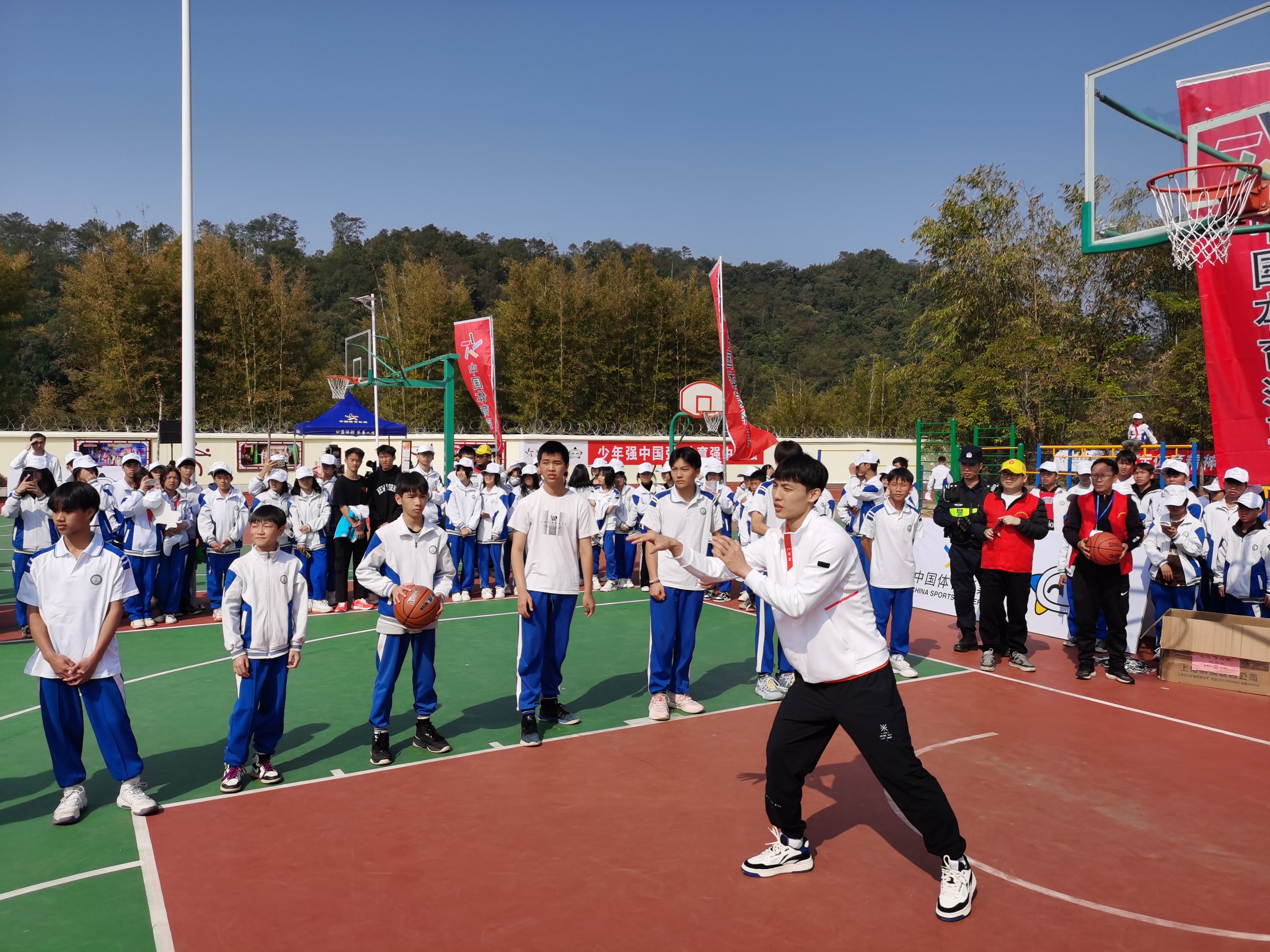 体育明星来了!雅典和北京两届奥运会柔道冠军冼东妹,前中国男篮主帅、CBA冠军教头、广东男篮主教练杜锋,CBA球员徐杰、赵锦洋,刚获得广东男篮联赛“扣篮王”的封开籍运动员卢家伦等参加了本次活动,他们向学校捐赠体育器材设备,开展篮球教学指导及互动,讲述自己成功背后的经历,让在场师生深受鼓舞。明星运动员把体育精神传递至乡村,进校园,植根在孩子心灵深处。
