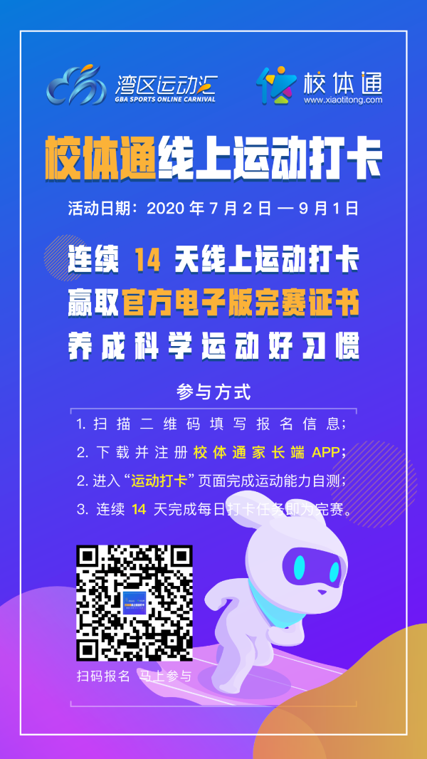 校体通平台的市场总监Nina在接受湾区运动组委会的采访中表示:校体通致力于青少年体质健康的提升,在疫情防控下,校体通平台积极响应国家体育总局办公厅下发的《关于大力推广居家科学健身方法的通知》,充分结合我国青少年身心发展特点,制定了一系列简便易行、科学有效的居家防疫运动视频,所以,参加这次的湾区运动会,也是特别希望能让这一系列居家防疫运动视频,惠及更多的青少年。