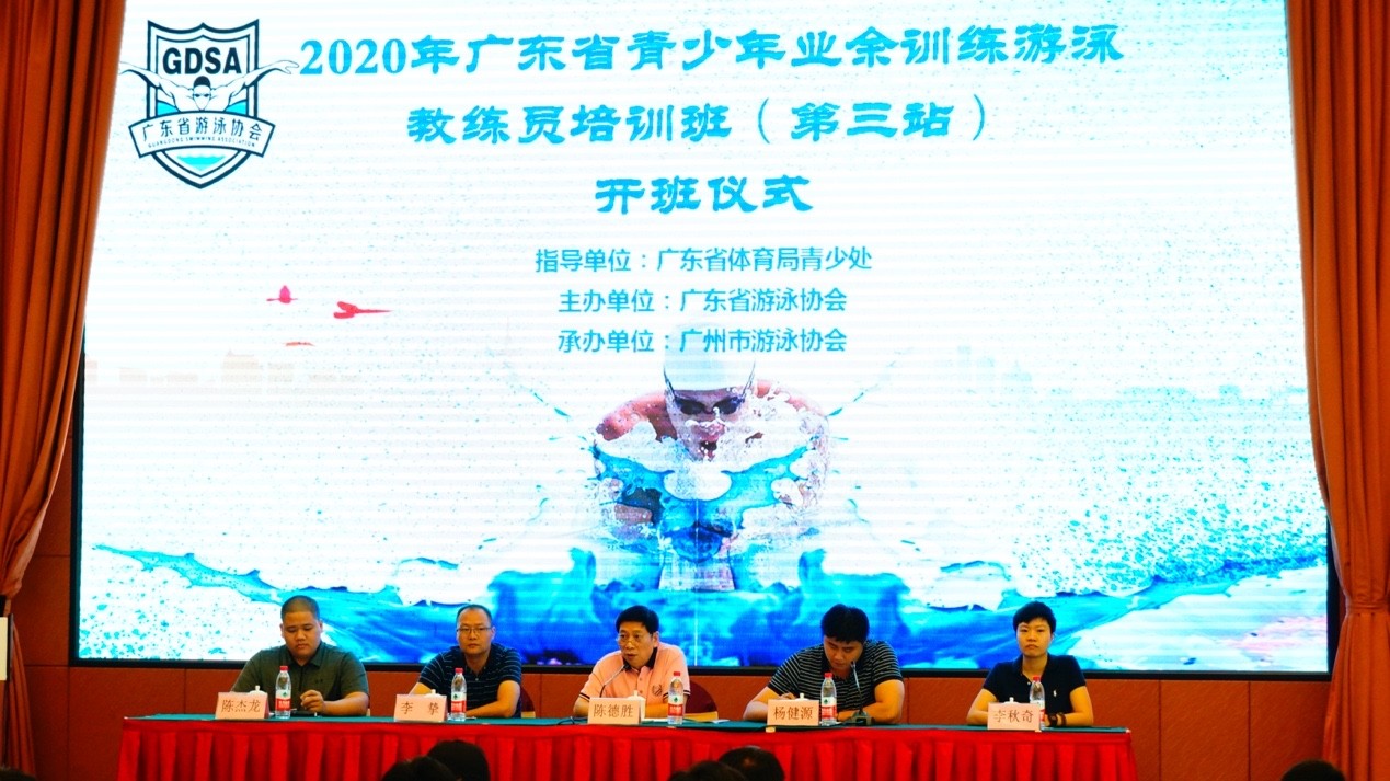 为大力帮助支持青少年游泳俱乐部等单位会员克服新冠肺炎疫情影响,助力单位会员做好复工复产工作。根据前期组织的业余训练游泳教练员培训班(广州站、东莞站)收到的热烈反响,为了满足大家参加青少年游泳俱乐部教练员注册的强烈需求,7月18日下午,2020年广东省青少年业余训练游泳教练员培训班(第三站)在广州三寓宾馆顺利开班。