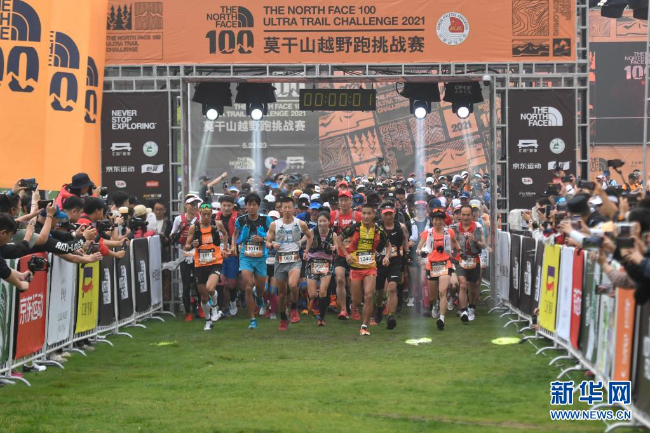 5月22日,选手在比赛中出发。当日,为期两天的莫干山越野跑挑战赛在浙江省德清县莫干山镇举行。本次比赛设100公里、70公里、35公里、女子10公里和5公里登高赛五个组别,共有3970位选手报名参赛。新华社记者 黄宗治 摄