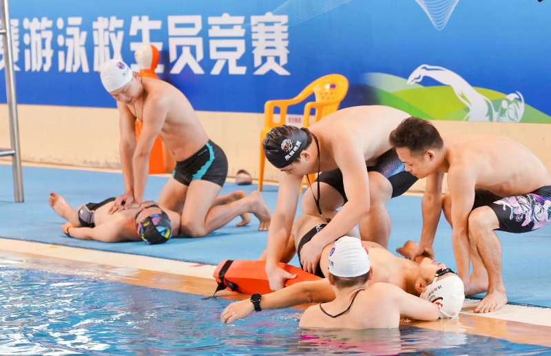 据悉,本次比赛分为个人赛和团体赛。个人赛项目包括理论答题、50米障碍游泳、50米浮标救生、抛绳救援、心肺复苏+AED决赛项目、综合能力项目。团体赛为4×25米假人接力和模拟救生。比赛项目的设置主要突出对游泳救生基本技术要领和实操能力的考查。经过激烈比拼,大赛产生个人一等奖3名、二等奖5名、三等奖8名,团体一等奖1名、二等奖3名、三等奖5名。
