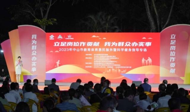 为推动教育和体育事业高质量发展,结合市委组织部万名党员干部“入镇下村”行动、“双联双助”和新时代文明实践工作,11月24日晚,2023年中山市教育体育惠民服务暨科学健身指导专场在石岐街道党建主题公园举行。