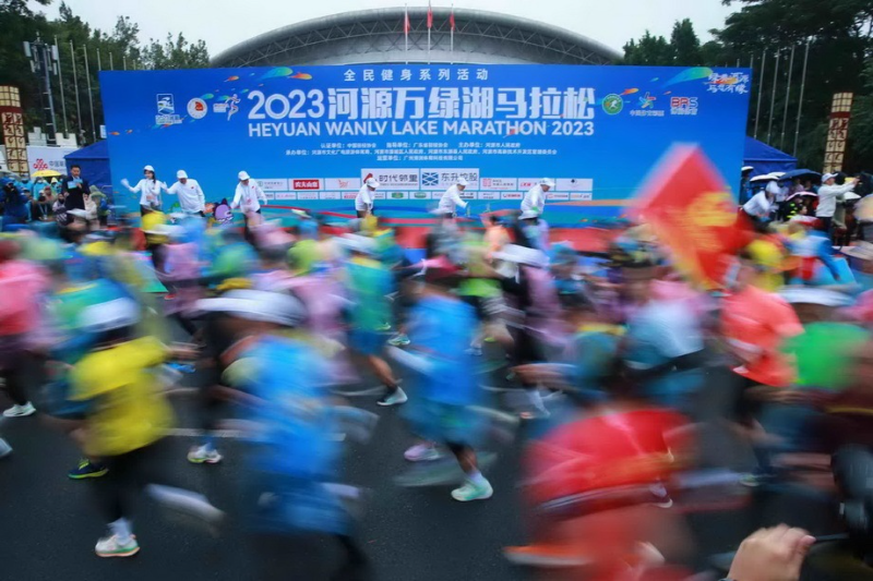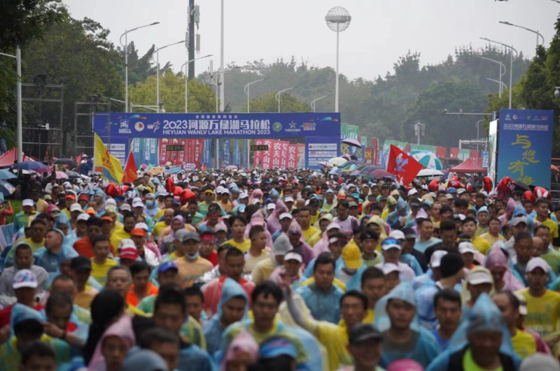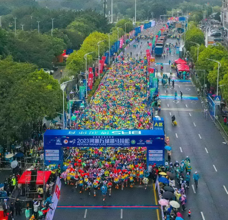 12月17日上午8时,2023河源万绿湖马拉松赛(以下简称“河马赛”)在河源市体育馆激情开跑,来自6个国家的1.5万余名选手在雨中迈开脚步,沿途丈量绿美河源。