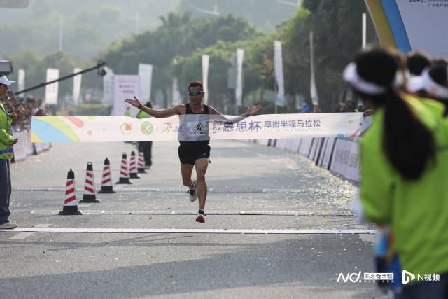 参加“厚马”,岑万江是“背靠背”比赛。昨天岑万江获得了深圳宝安马拉松国内选手第一名,今天再夺厚街半程马拉松第一名。岑万江对成绩感到非常满意和开心。