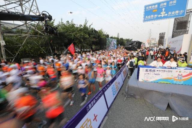 上午8时,黄金小镇人山人海,来自全国各地的7000名参赛选手蓄势待发。随着发令枪声响起,选手们斗志昂扬地冲出起跑线,向着终点目标冲刺。选手们在奋力奔跑,市民在道路两侧驻足观赛,加油声此起彼伏。