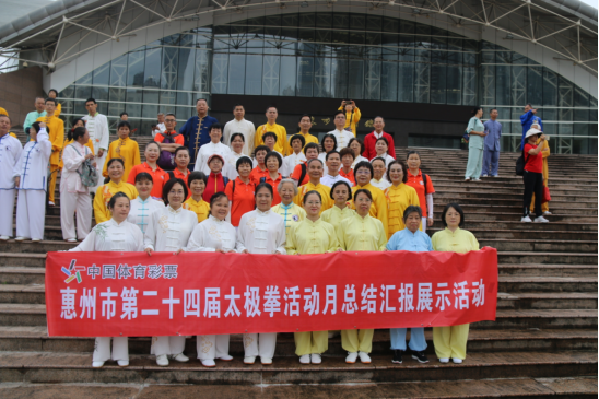 为推动群众体育活动的广泛开展,提高我市太极拳运动水平,进一步倡导“每天锻炼一小时,健康生活一辈子”的健康理念,由惠州市文化广大旅游情色小说 指导,惠州市太极拳协会主办,体彩公益金资助的“惠州市第24届太极拳活动月”于4月举行。5月18日,各站点学员在惠州体育馆广场进行集中展示。