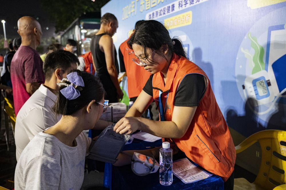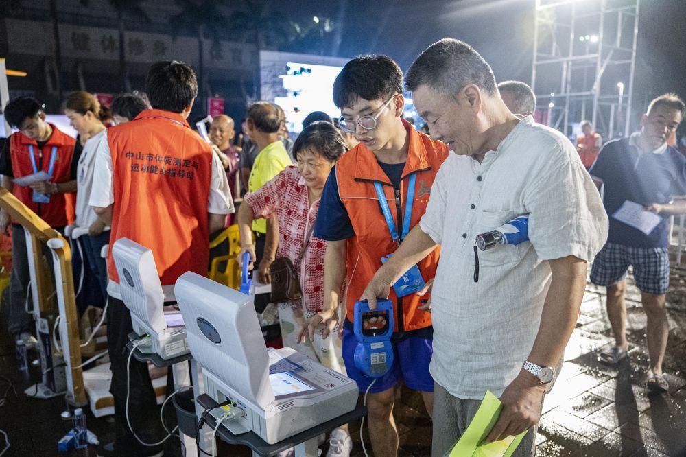 主办方在现场为市民开设体质监测服务。据广东省体育科学研究所相关负责人介绍,体质监测包括身高、体重、肺活量、握力、坐位体前屈、纵跳、选择反应时、单脚站立、仰卧起坐、俯卧撑等多个项目,不同于一般意义上的医疗体检,旨在帮助人们了解自己的身体素质状况以及自身体质基本变化规律。市民群众可以根据不同的年龄阶段,选择参与不同的测试项目,根据数据出具具体的监测报告,而现场的体质监测专家也会针对报告进行科学合理的健身指导。