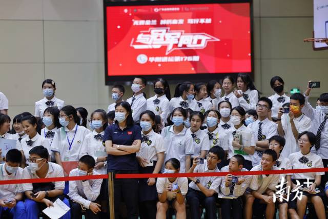 数百名华附学生在学校体育馆四楼篮球馆迎来了他们心中的体坛偶像。当主持人陆续报出教练和队员的名字时,台下爆发出一浪高过一浪的欢呼声。在现场,郑薇和球员们一一向同学们分享了她们各自的心路历程。