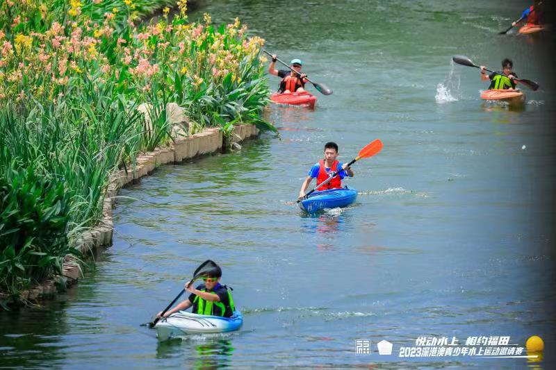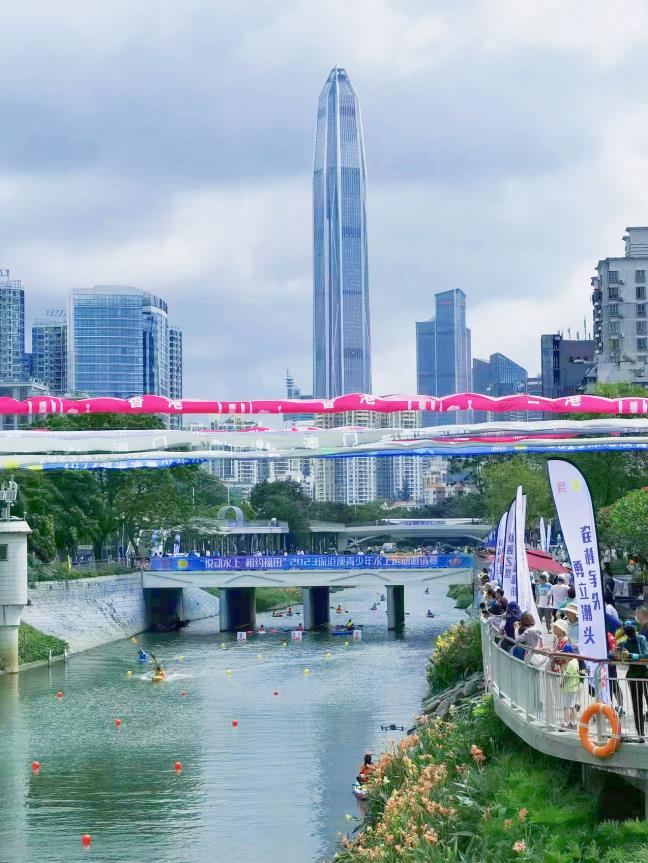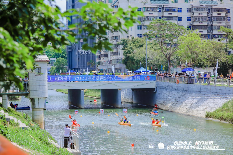 “新洲河能划船了,找回了小时候的感觉!”“600米摩天楼做背景划船,很酷!”赛龙夺锦的激情、争先恐后的紧张感、热情高涨的助威声,这些属于水上运动的“高能”场景在深圳福田区新洲河一一上演。这些正是“悦动水上,相约福田”——福田全民健身嘉年华之2023深港澳青少年水上运动邀请赛的比赛现场。5月21日,正值农历二十四节气中的小满时节,俗话说“小满小满,江河渐满”,近120名来自深港澳地区的青少年运动员相聚深圳福田,在水清岸绿、河畅景美的新洲河劈波斩浪、奋楫争先。
