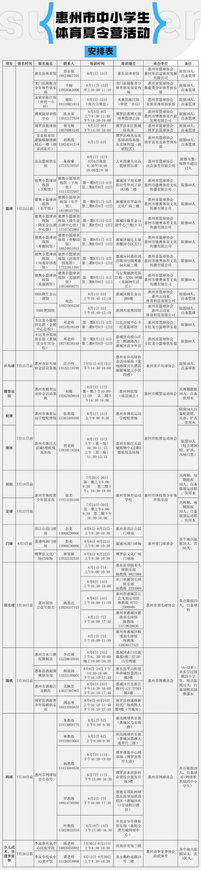 为推动全民健身活动及学校阳光体育运动的广泛开展,丰富学生假期生活,惠州市文化广电旅游情色小说 将于暑假期间举办2023年惠州市中小学生体育“夏令营”活动,对本市初中、小学生进行相关运动技能培训。
