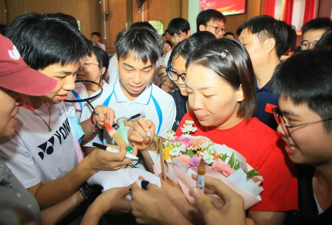 “我特别高兴,在一所中学里,能有这么多粉丝,而且大家都如此热爱羽毛球运动。”陈清晨说:“希望大家都能对羽毛球保持热爱,把自己的体魄锻炼得更强大!”