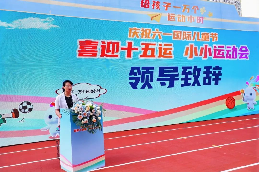 党组成员、副局长林瑛登台致辞,为本次活动送上美好的祝愿和殷切的期望。 2004年雅典奥运会跆拳道冠军罗微和2012年伦敦奥运会跳水冠军张雁全的到场,不仅为活动增添了光彩,更让孩子们感受到了榜样的力量。 罗微携孩子发起“给孩子一万个运动小时”倡议。 本次运动会设置丰富多彩的体育活动互动体验区,包括足球、篮球、排球、跑酷、蹦床、体能欢乐营、岭南传统体育游戏等,让幼儿在阳光下快乐奔跑,尽情享受运动的乐趣,培养终身运动的良好习惯。 幼儿体育特色活动展示同样精彩纷呈,各个幼儿园的孩子们用独特的创意和精彩的表演,展现了体育运动的魅力。 “喜迎十五运,小小运动会”的成功举办,不仅为孩子们提供了一个展示自我的平台,更让他们在运动中收获了健康与快乐。 此次活动不仅是一次体育盛会,更是一次奥林匹克体育精神的传承,让孩子们有机会参与运动、体验运动、爱上运动,为他们的健康成长奠定坚实的基础。
