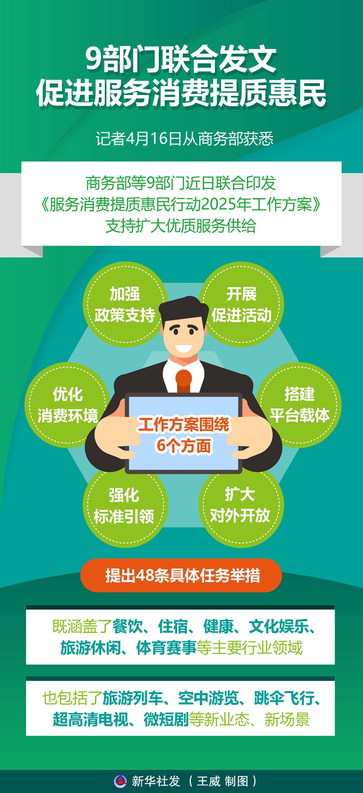 从商务部获悉,商务部等9部门近日联合印发《服务消费提质惠民行动2025年工作方案》,支持扩大优质服务供给。