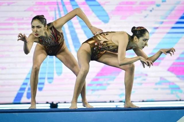 在今晚的双人自由自选项目比赛中,二人第8组出场,同样再现了奥运夺冠作品《豹》。与上午柔美的《莲》不同,《豹》更具野性,展示了豹子的速度与激情,姐妹俩在水中时而舒缓轻柔,时而狂野有力,引发全场阵阵掌声。