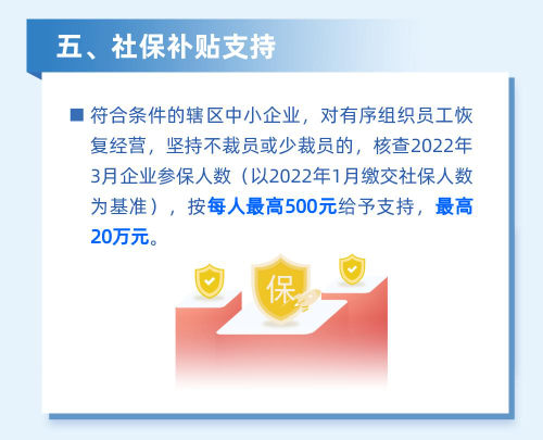 5.对南山区企业在深圳居住的员工,居住地自2022年2月1日至3月31日期间,因疫情防控被划定为封控区、管控区(含参照管控区管理区)而影响正常工作的,根据企业实际受影响的员工人数给予企业一次性社保补贴。按企业为受影响员工上月实际缴纳社会保险费的30%且每人不超过600元,给予每家企业最高不超过10万元的社保补贴。(责任单位:区人力资源局)