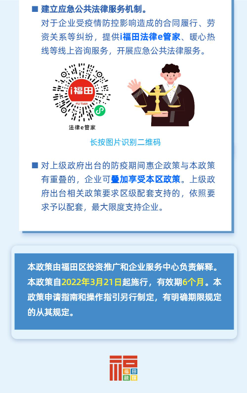 开展专项法律援助。建立应急公共法律服务机制,对于企业受疫情防控影响造成的合同履行、劳资关系等纠纷,设立专线提供应急公共法律咨询服务。(牵头单位:区司法局)