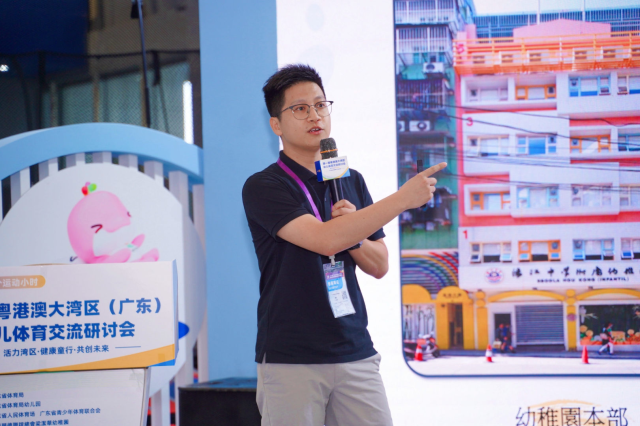 研讨会上,来自粤港澳三地的幼儿园代表还从空间规划、环境创设、课程构建等方面,分享了各自的体育特色建设经验。广东省育才幼儿院一院副院长刘思玲带来了构建“立体空间+三维课程”幼儿体能发展新生态的思考;香港顺德联谊总会梁洁华幼稚园校长吴少明分享了香港“幼儿体能与健康”范畴的发展现况。澳门濠江中学附属幼稚园教研组长郭凯则以“‘挤’中生智——澳门幼儿体育的实践与探索”为题分享了该园创新“小篮球”课程并形成文化的心路历程。深圳壹基金公益基金会高级项目经理罗元佳讲述了美团乡村儿童操场公益计划如何用“数字+公益”的方式,发展乡村幼儿体育,为乡村儿童带来改变。