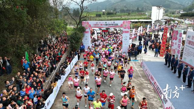 上午9点,随着一声鸣笛,来自全国各地的1100余名参赛选手在桃李花海之间浪漫开跑,在大自然的秀美山水中尽享运动乐趣,用脚步丈量春光美景。