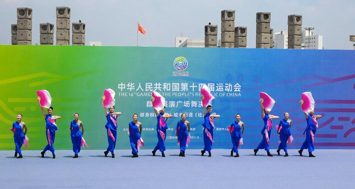 本届全运会首次设置群众展演项目广场舞、广播体操、健身气功、太极拳4个大项,共766支队伍6800多人参赛。广场舞设健身舞、健身秧歌(鼓)、广场龙舞三个分项,健身秧歌(鼓)分项线上展演及网络投票于8月8日开始,8月22日结束,8月25日进行线下评审。
