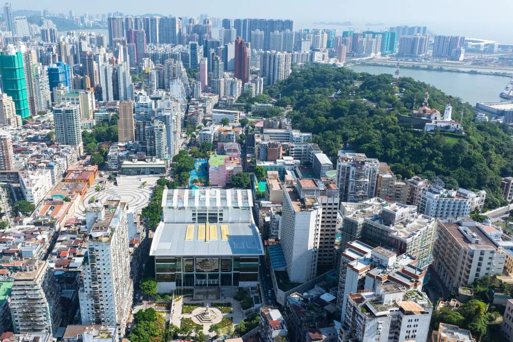 ↑澳门东亚运动会体育馆(10月29日摄,无人机照片)。全运会排球女子成年组比赛在这里举行。新华社发(张金加摄)