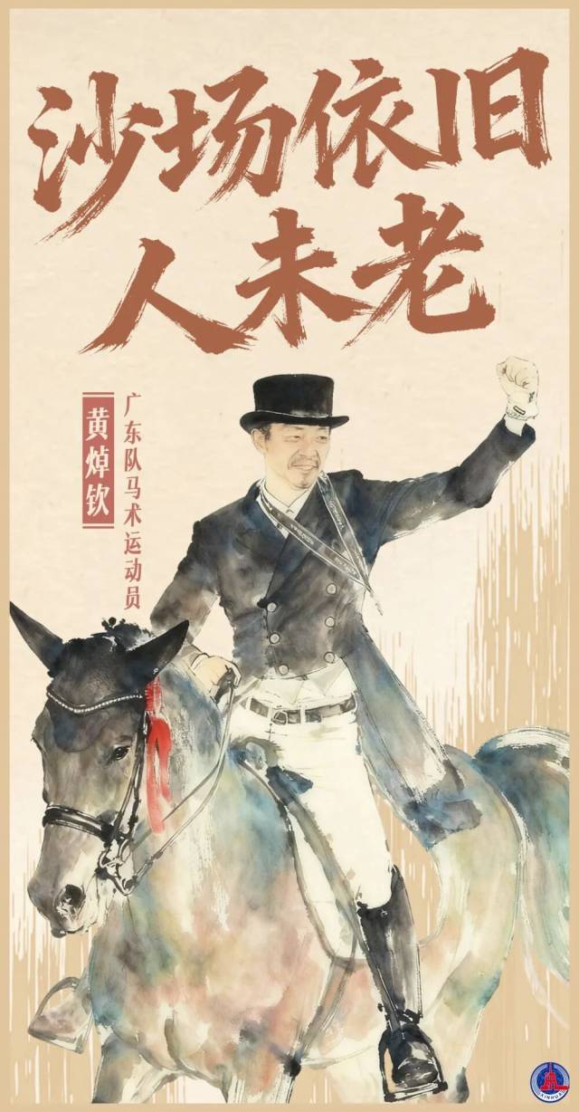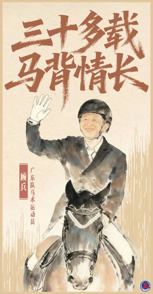 2025年11月12日,顾兵在第十五届全国运动会马术盛装舞步个人赛胜利骑乘中向观众致意。图/新华社