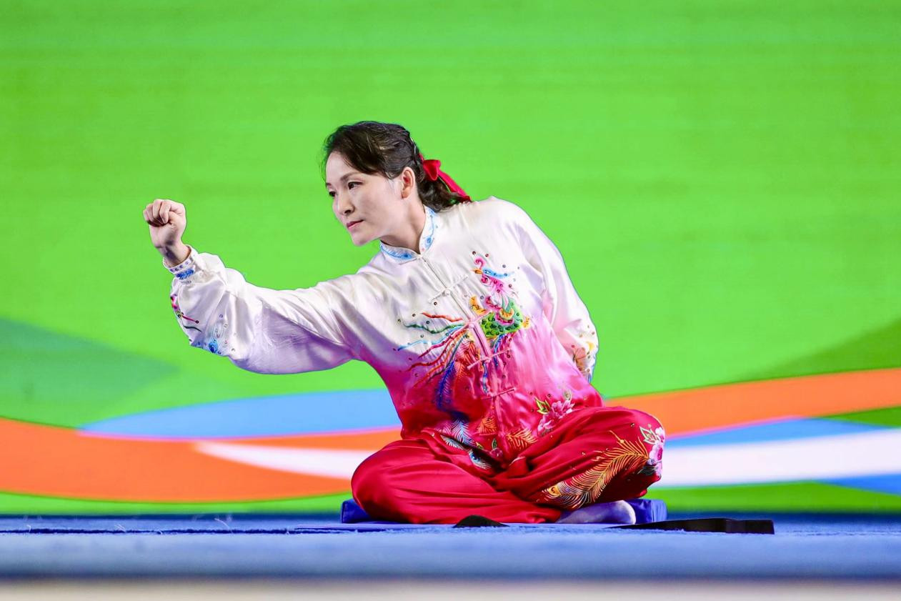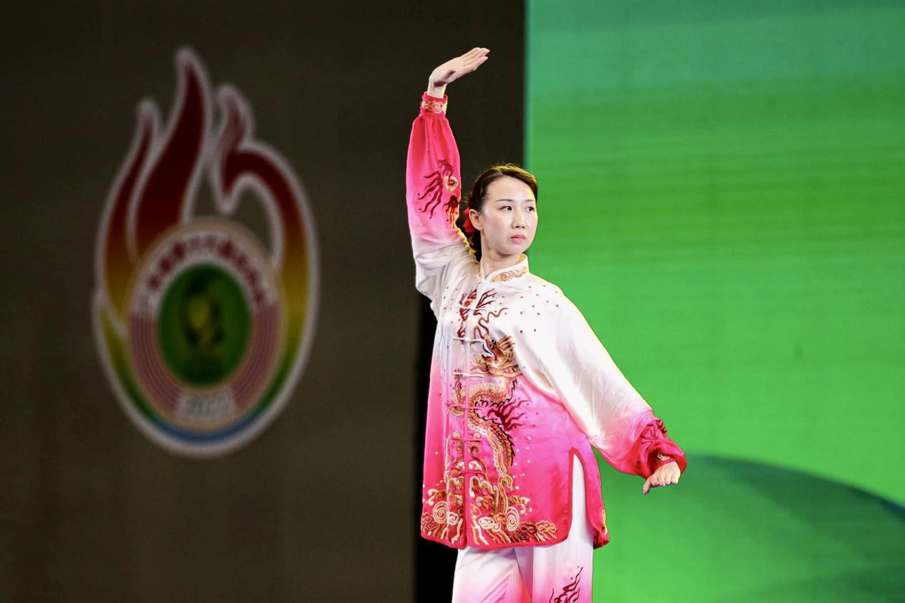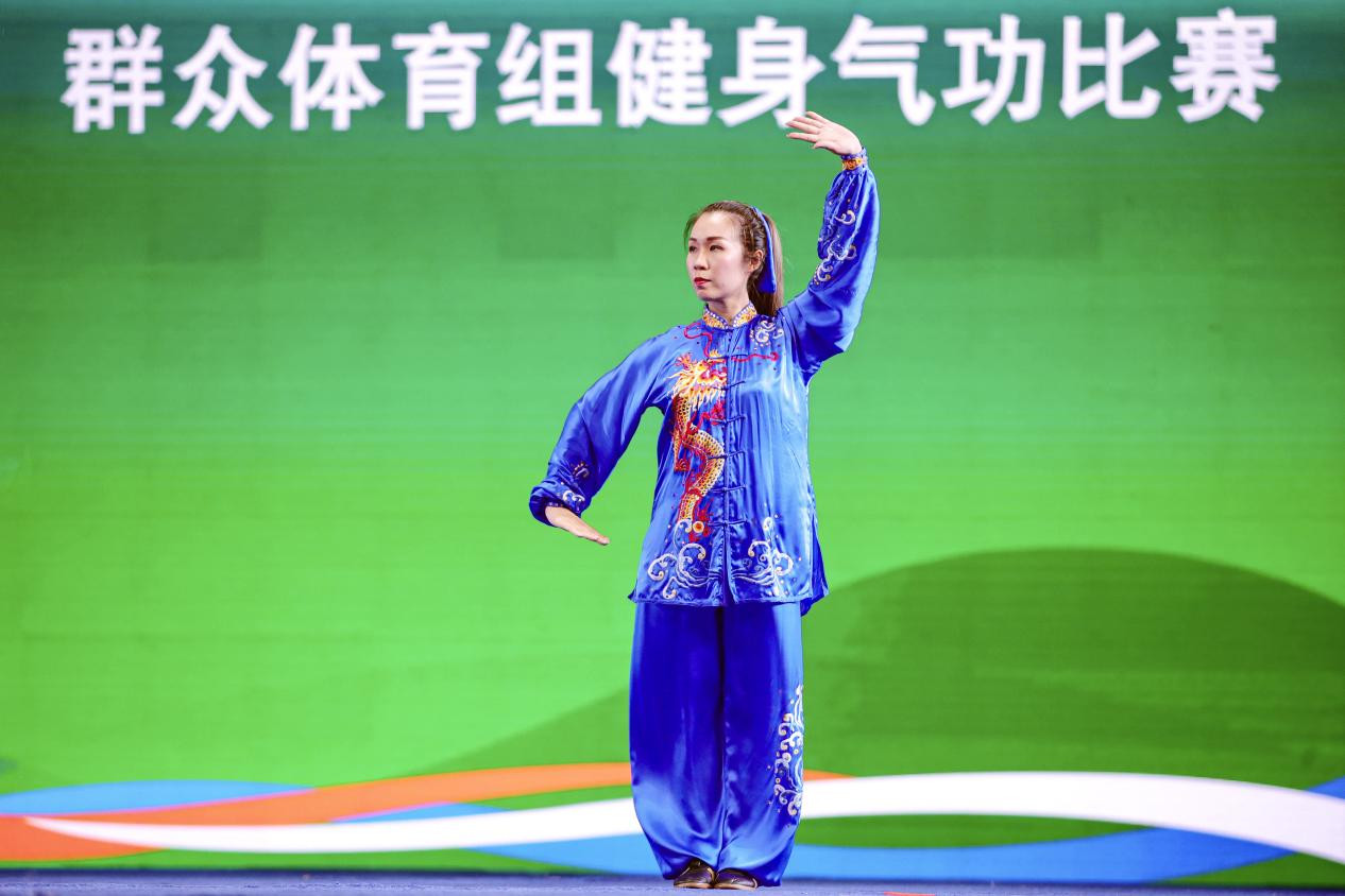 比赛中,来自广州队的刘艳君在导引养生功十二法项目中以9.35分的高分摘冠,另一位广州队选手林俊良在太极养生杖项目中以9.0分登顶,两人是个人赛项目唯二以9分及以上夺冠的选手,展示了超群的实力。