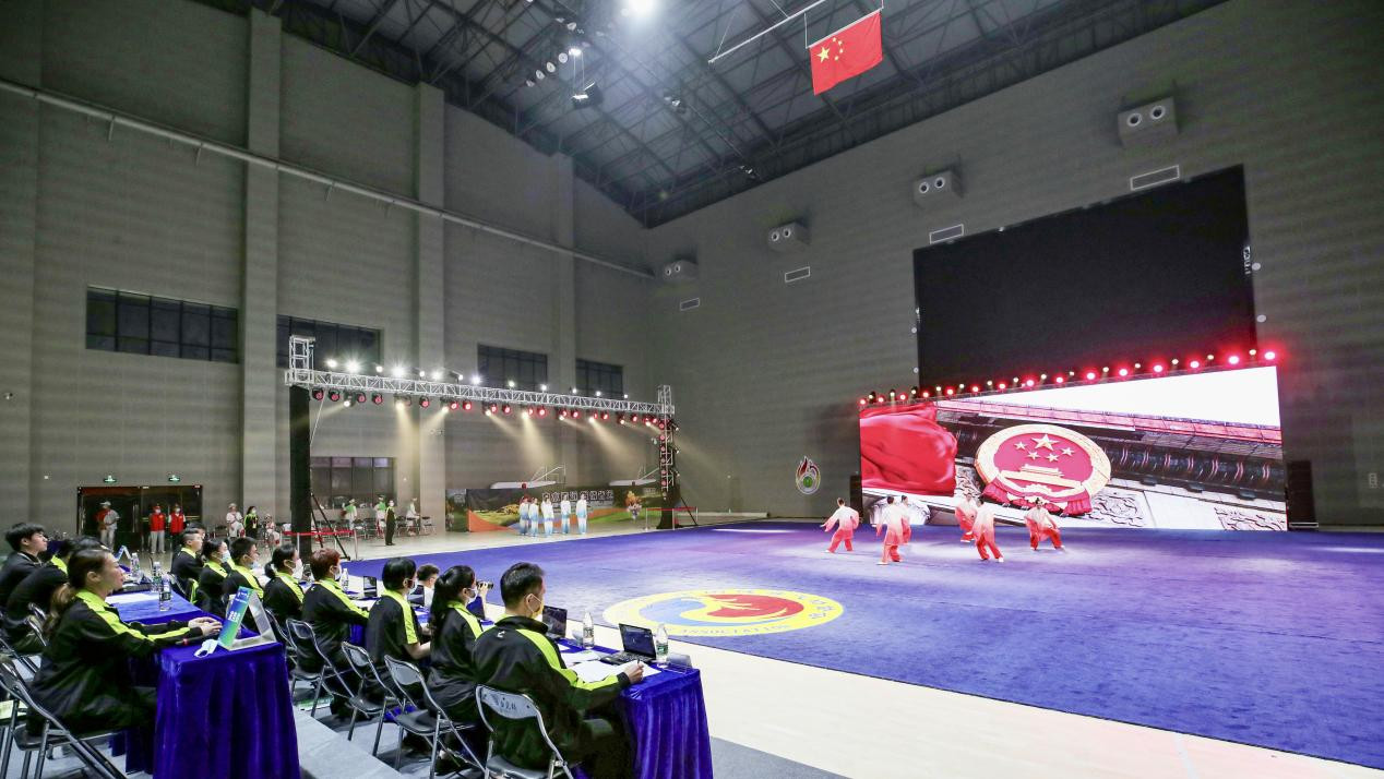 19日,易筋经、六字诀、八段锦、五禽戏集体赛在连山壮族瑶族自治县体育馆精彩上演。