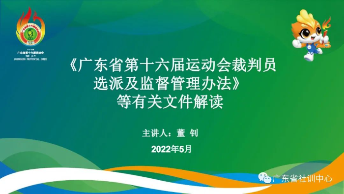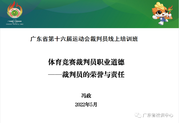 为保障广东省第十六届运动会安全顺利进行,营造公平、公正的竞赛氛围,广东省社会体育和训练竞赛中心根据《广东省第十六届运动会裁判员选派与监督工作管理办法》等相关要求,组织开展省运会竞赛项目 “全覆盖”的裁判员培训工作。5月10日晚,广东省第十六届运动会裁判员线上培训班正式启动。