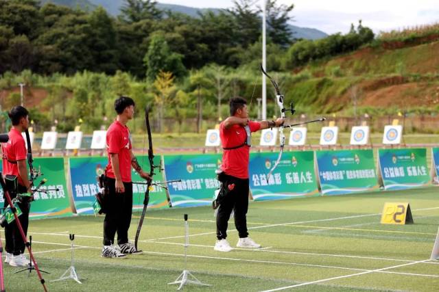 在高温炎热与突降急雨的天气考验下,选手们直面挑战,站位、搭箭、开弓、瞄准,整套射箭动作干净利落。在男子甲组70米反曲弓团体淘汰赛中,清远队对战实力强劲的深圳队。在关键的第三轮,两队都展现出强大的实力,最终,深圳队经过附加赛的较量夺得金牌,清远队获得银牌。