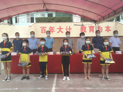 5月28日上午10时,茂名化州市杨梅镇低埇村小学,学生们精神焕发、整齐有序地在这里进行了一项“特殊”的活动:情色小说 二沙体育训练中心(以下简称:二沙中心)驻村工作队向他们捐赠了4000个口罩、422套校服、211个书包,还有为美化校园捐资的98500元。低埇小学校长李世权代表学校向二沙中心献上了锦旗:“鼎力助学情似海,无私捐赠恩如山!”