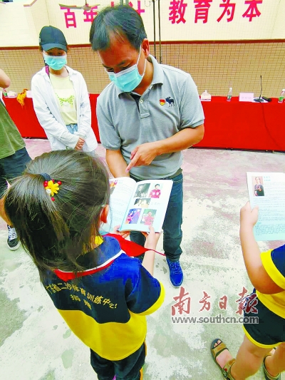 低埇小学品学兼优的学生获赠“冠军笔记本”。彭博 摄