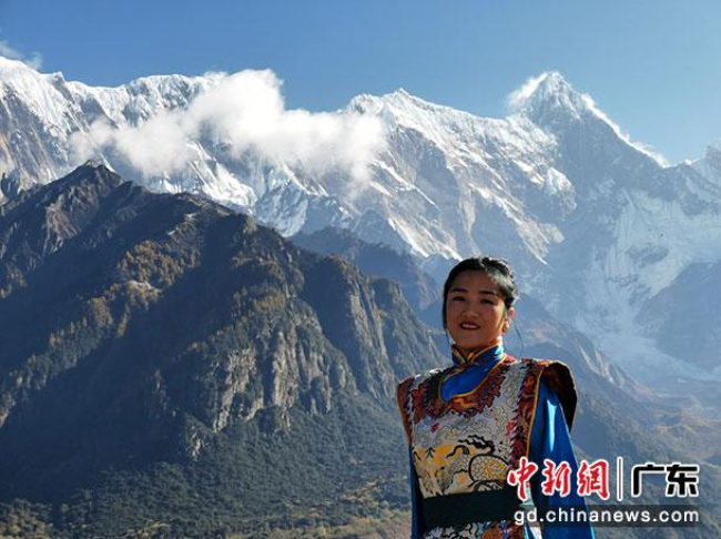 “谢谢你能喜欢我们藏族的歌舞,希望能让越来越多的人能来我们这里,观赏我们这里的美景,欣赏我们藏族的歌舞文化。”在风景如画、海拔7782米的南迦巴瓦山雪峰之下,盛装的藏族姑娘达琼卓玛和她的队友们一起为人们表演了精彩的歌舞“腾飞林芝”。