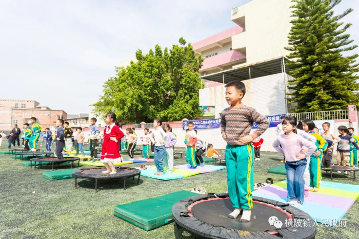 2023年,驻横陂镇帮扶工作队推动大众蹦床再次走进校园,旨在通过体育技能培训,增强儿童青少年参与体育运动的兴趣,促进大众蹦床运动项目普及,同时推动蹦床竞技与全民健身的融合发展,全面推进体教融合,提高儿童青少年健康水平,并为进一步拓展青少年体育后备人才培养渠道提供支持。学校各方表示将定期开展工作会议、观摩学习、赛事组织等交流活动,不断加强校区的资源共享、交流互促,承办方也表示将持续为本地区校园体育和大众蹦床普及推广带来新的方式、新的体验、新的拓展。