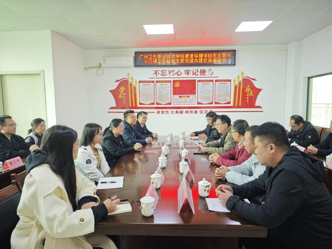 为深入贯彻落实广东省“百县千镇万村高质量发展工程”和“四个一万”全民健身服务计划,推动校地党建工作的创新融合发展,1月9日上午,广州卫生职业技术学院康复保健学院党支部与小江镇卫生院党支部党建共建交流座谈会在清远市阳山县小江镇卫生院举行。阳山县“百千万工程”指挥部办公室副主任(挂职)、广东省“百千万工程”帮扶协作驻阳山县工作队副队长王圣君,县卫生健康局副局长(挂职)、“双百行动”驻阳山县副队长徐兆健,阳山县卫生健康局党组成员、副局长李志奇,小江镇党委副书记陈志兵,小江镇驻镇帮镇扶村工作队,小江镇卫生院班子成员,广州卫生职业技术学院康复保健学院党支部书记黄雪群及师生一行等参加会议。