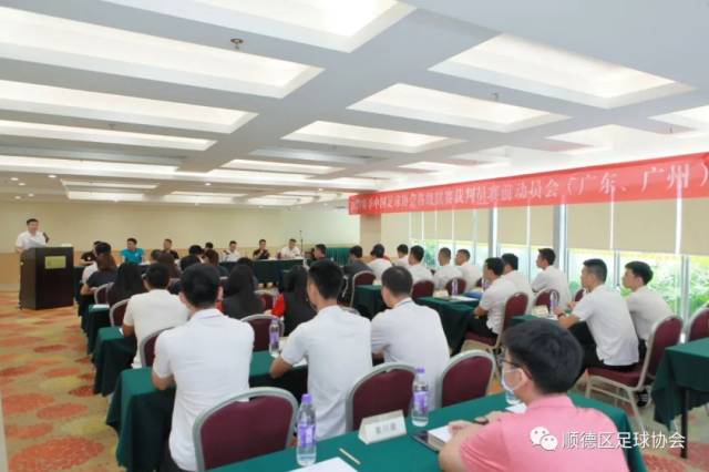 7月9日上午10:00,2020赛季中国足球协会各级联赛裁判员赛前动员会(广东、广州)在顺德嘉信康年花园酒店多功能会议厅进行。广东省足球运动中心主任、省足球协会副主席程志文,省足球协会常务副秘书长任仲儒,省足球协会副秘书长岑亦斌,省足球协会秘书处裁判工作主管王亮,顺德区文广旅体局、顺德足球协会相关负责人,广东省、广州市足球协会裁判委员会相关负责人,以及全体裁判员出席了动员会。