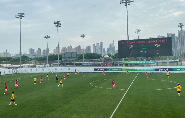 第35分钟,广东队由于帕尔曼江入球扳平,这也是他在小组赛第三场比赛打进的第四球。第38分钟,广东队前锋陈祥煜打入一球,广东队以2比1反超比分结束上半场。下半场双方形成拉锯战,大家都没有找到太多有效的破门办法。