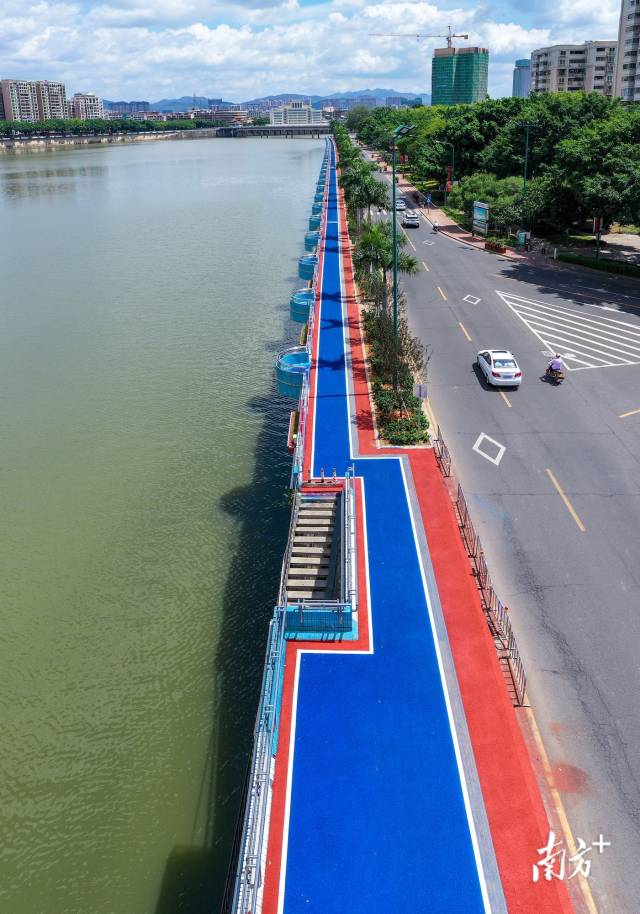 新建梅江沿岸13公里塑胶健身步道投入使用。 南方+ 何森垚 拍摄