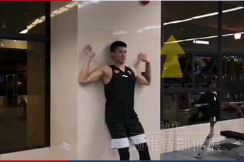 要点:肩膀贴墙,匀速伸展。这个动作能缓解对于长期玩手机和看电视而造成的颈椎背部酸痛。