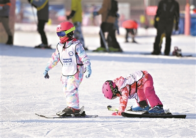 北京各滑雪场平日里一派热闹景象。(新华社)