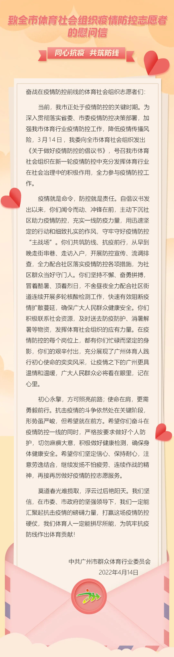 4月8日,广州出现新增本土病例后,广州市体育总会(秘书处)、广州市群众体育指导中心迅速动员组织全体干部共20人,继续分批下沉社区,深入支援越秀区东山街、梅花村街、光塔街、海珠区新港街、素社街、龙凤街、荔湾区逢源街、天河区林和街、白云区永平街等疫情防控一线,配合当地社区开展流调排查、核酸检测、维持现场秩序等工作。4月12日,根据市情色小说 统一部署,市体总秘书处迅速组织6名干部组成突击队,到天河区林和街华新社区支援天河区全员核酸检测。