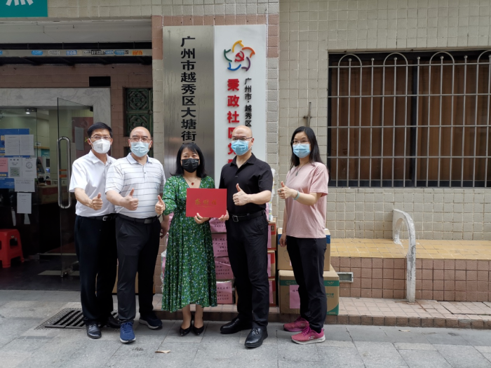 越秀区足球协会组织三家会员单位于4月12日在抗疫志愿活动中向当地社区捐赠爱心物资,为抗疫一线送去爱心和温暖,全力支持广州抗疫工作。